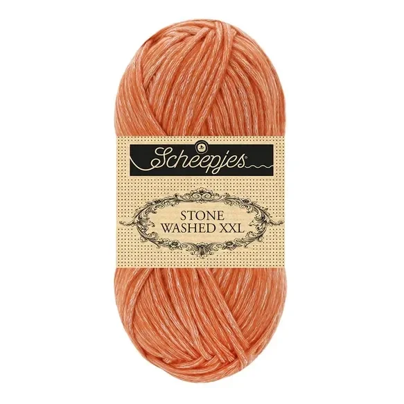 Scheepjes Stone Washed XXL is een zijdezacht garen, ondanks de robuuste naam. Het karakteristieke Stone Washed uiterlijk komt door de unieke productiemethode van dit garen: in een netje van ecru-kleurig katoen worden kleurige en donzige acrylvezels geblazen. Het garen heeft de ademende kwaliteit van katoen, maar is dankzij het acryl sterk en gemakkelijk in onderhoud. Die combinatie maakt Scheepjes Stone Washed XXL ideaal voor de meest uiteenlopende brei- en haakprojecten en bovendien geschikt voor elk seizoen. Het garen is verkrijgbaar in een uitgebreid kleurenpalet en in diverse garendiktes.